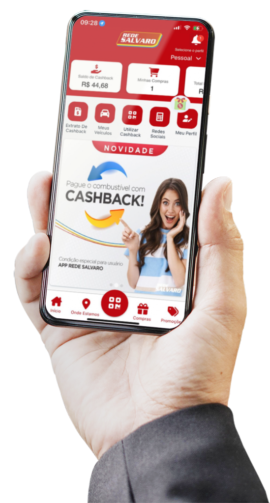 Gere o código promocional no App para efetuar o pagemento e ganhe cashback na hora.